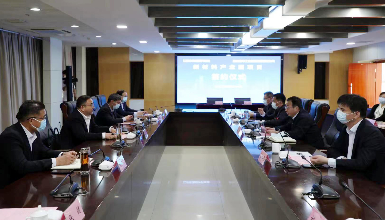 4月21日上午,集團(tuán)公司與東海經(jīng)濟(jì)開(kāi)發(fā)區(qū)在東海縣政府舉行新材料產(chǎn)業(yè)園項(xiàng)目簽約儀式。副市長(zhǎng)、東??h委書(shū)記宋波,縣長(zhǎng)張其兵、常務(wù)副縣長(zhǎng)歐偉、縣委常委劉峰,集團(tuán)公司黨委書(shū)記、董事長(zhǎng)楊龍,常務(wù)副總經(jīng)理?xiàng)顕?guó)新、副總經(jīng)理劉承志出席簽約儀式。