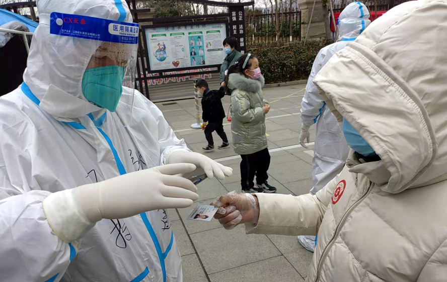 “你好!我是文昌社區(qū)志愿者?!币槐楸榈刂貜?fù)著同樣話語,敲開一扇扇門,為了摸清底數(shù),掌握實(shí)情,精準(zhǔn)施策,支部黨員志愿者挨家挨戶上門登記。青年黨員劉林回憶,電梯停開,一次一口氣跑上8樓后,還沒有來得及敲門,發(fā)現(xiàn)戴著N95口罩根本無法大口喘氣,一陣窒息感隨之而來,至今難忘;來自一線的黨員楊加軍,是一名退伍軍人,憑借著在部隊(duì)刻苦磨礪出來的認(rèn)真勁兒,硬是穿著“大白”連續(xù)工作17個(gè)小時(shí),滴水未進(jìn),完成采集核酸登記檢測(cè)人員信息1200人,防護(hù)服內(nèi)下著“小雨”,雙手被汗水浸得發(fā)白,臉上被口罩勒出深深的溝痕。當(dāng)“大白”很苦,但每當(dāng)他們看到胸前黨員徽章時(shí),總會(huì)想:“我是黨員,關(guān)鍵時(shí)刻,就要沖得出、頂?shù)蒙稀!?/span>