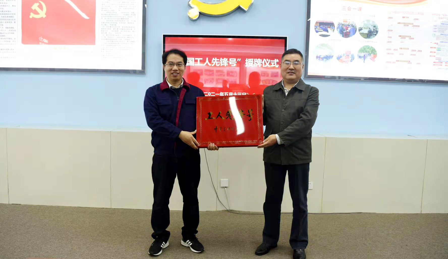 5月13日,市總工會(huì)副主席陳健到氨綸公司,為差別化氨綸研發(fā)項(xiàng)目組授予“全國(guó)工人先鋒號(hào)”獎(jiǎng)牌。集團(tuán)公司工會(huì)主席劉承志,市總工會(huì)勞動(dòng)和經(jīng)濟(jì)工作部部長(zhǎng)許小兵等參加授牌儀式。