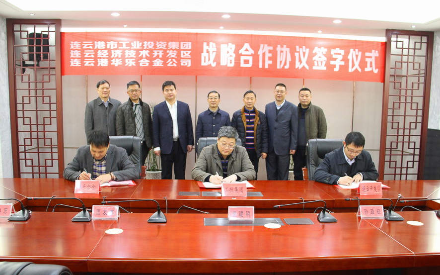 1月4日上午,集團(tuán)公司與連云經(jīng)濟(jì)開發(fā)區(qū)、連云港華樂合金公司舉行戰(zhàn)略合作協(xié)議簽約儀式,集團(tuán)公司總經(jīng)理胡建明、總會(huì)計(jì)師匡友本,連云區(qū)委常委、連云開發(fā)區(qū)黨工委書記張其兵,連云港華樂合金公司董事長陸大淦等出席簽約儀式。