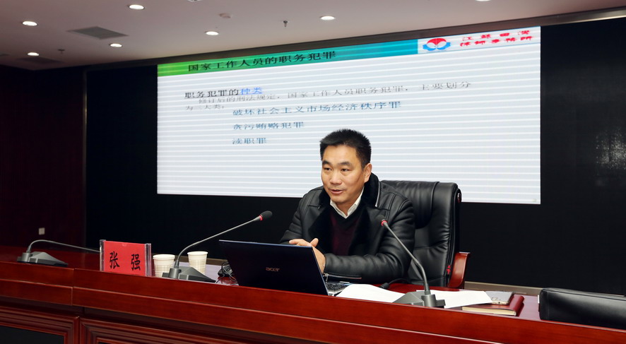 為進(jìn)一步幫助廣大干部職工筑牢思想道德防線,預(yù)防職務(wù)犯罪,12月28日上午,集團(tuán)公司舉行廉潔履職警示教育專題報告會,邀請江蘇田灣律師事務(wù)所副主任張強(qiáng)作廉潔履職專題報告。集團(tuán)公司領(lǐng)導(dǎo)班子成員,各單位領(lǐng)導(dǎo)班子成員、三級法人單位黨政負(fù)責(zé)人、集團(tuán)總部全體管理人員參加報告會。