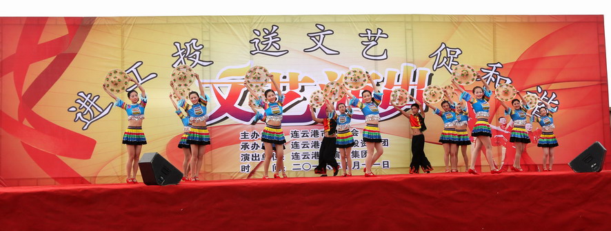 10月11日下午,由連云港市總工會主辦、集團公司承辦、市演藝集團演出的“進工投、送文藝、促和諧”文藝演出在灌西投資公司精彩上演,市總工會副主席陳健、集團公司工會主席戴鴻鳴等領導,以及1000余名觀眾觀看了演出。
