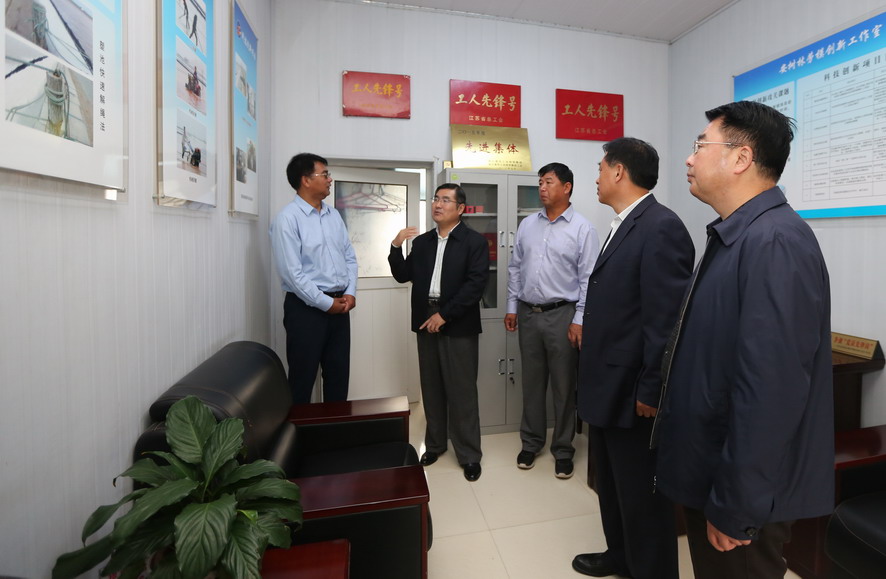 演出結束后,陳健在戴鴻鳴等人的陪同下,看望了江蘇省勞動模范安樹林。