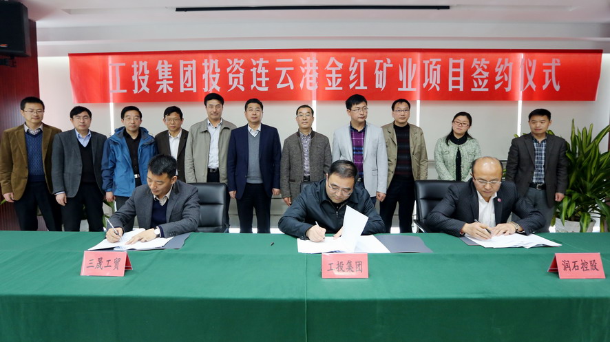 3月30日上午,集團公司與浙江潤石控股公司、東海三晟工貿(mào)公司簽訂連云港金紅礦業(yè)項目增資擴股協(xié)議,集團公司董事長、黨委書記楊龍,總經(jīng)理胡建明、副總經(jīng)理王士華、總經(jīng)濟師陳如軍,連云港金紅礦業(yè)有限公司股東潤石控股集團董事長陳海彬、三晟工貿(mào)公司董事長許向陽等出席簽約儀式。