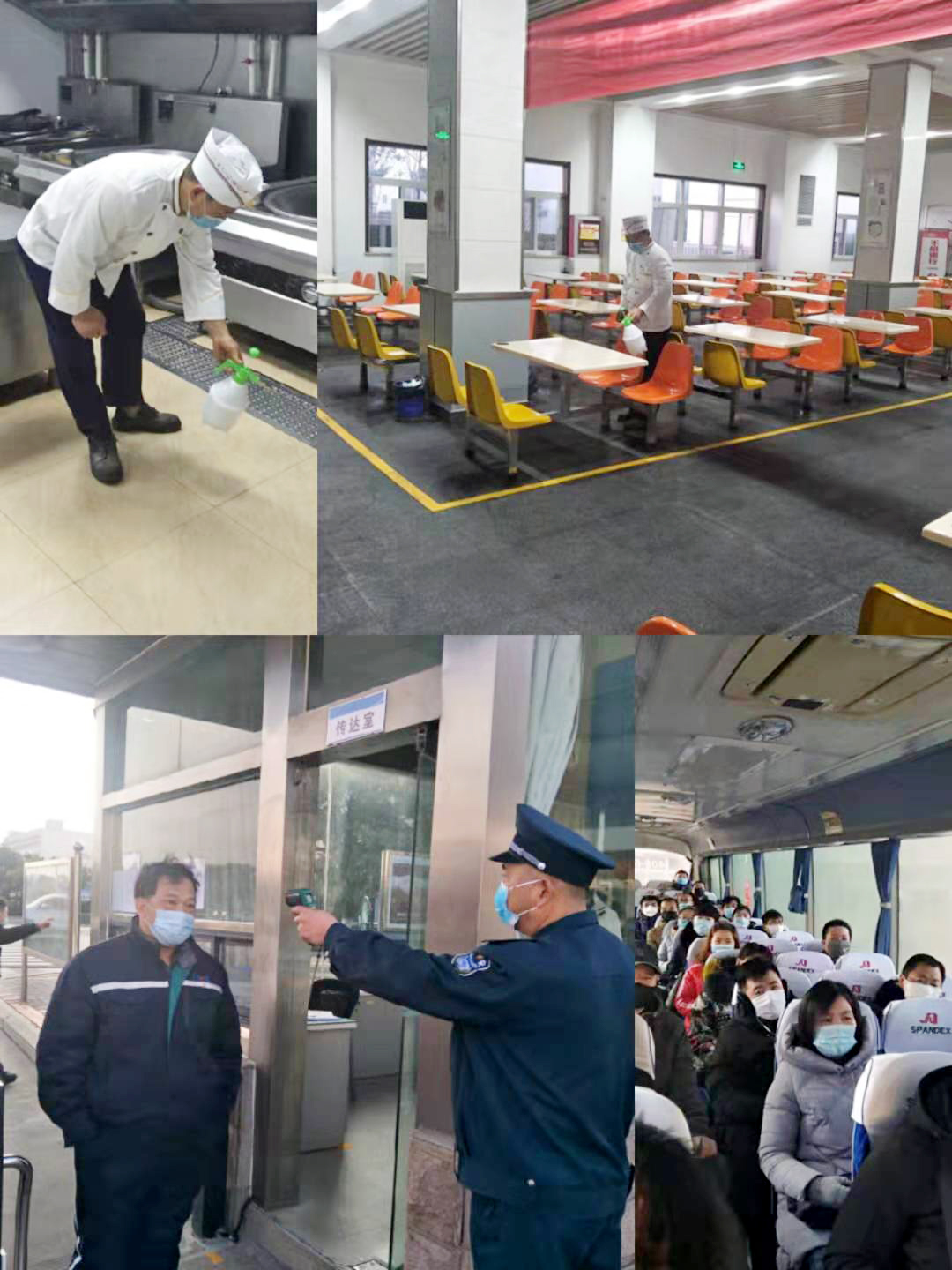 全力做到“三個(gè)全覆蓋”。一是消殺全覆蓋,做到無死角。結(jié)合疫情防控實(shí)施方案全面開展衛(wèi)生整治消殺,對進(jìn)廠車輛、食堂、廁所、辦公區(qū)、操作平臺、作業(yè)電梯等每4小時(shí)進(jìn)行全面消毒。二是摸排全覆蓋,做到無縫隙。以部門為單位進(jìn)行全員摸排并建立日報(bào)制度。在公司門口使用溫度檢測儀器測量入廠人員體溫,體溫正常允許進(jìn)入,發(fā)現(xiàn)體溫異常人員立即上報(bào)公司安全部或者值班領(lǐng)導(dǎo)執(zhí)行應(yīng)急隔離救援。對外地回廠人員,特別對疫區(qū)或途徑疫區(qū)的到廠人員進(jìn)行重點(diǎn)摸排。三是宣傳全覆蓋,做到無遺漏。利用公司宣傳欄、紅色長廊、網(wǎng)站、公眾號、微信群等宣傳陣地開展宣傳培訓(xùn),對員工開展疫情防控知識培訓(xùn)。將公司的防控措施、應(yīng)急預(yù)案、就醫(yī)流程、疫情防護(hù)等應(yīng)知應(yīng)會的防疫知識傳達(dá)到每一位員工,引導(dǎo)他們科學(xué)防疫。