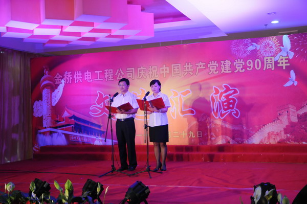 6月29日,公司為慶祝建黨90周年,隆重舉行文藝匯演。集團公司黨委副書記、紀(jì)委書記鄭宜虎,工會主席戴鴻鳴,有關(guān)部門負(fù)責(zé)人,以及部分離退休老干部應(yīng)邀出席。 演出節(jié)目既有詩朗誦《七月,為黨歌唱》、大合唱《共架金橋》、女聲獨唱《走進新時代》等,又有公司自創(chuàng)、自編、自導(dǎo)的搖滾快板《金橋供電在崛起》、相聲《誰聰明》、舞蹈《螃蟹調(diào)》等。整個演出大氣磅礴,精彩紛呈,掌聲不斷。(司宣)