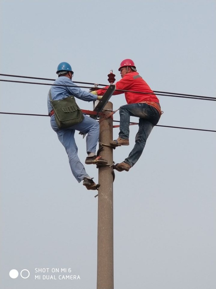 5月2日,張圩新農(nóng)村小區(qū)配電安裝工程施工現(xiàn)場(chǎng),一根15米的電線桿上,榮獲集團(tuán)“技能大師”稱號(hào)的王建采用實(shí)踐教學(xué)的方法,親自為新員工祁明智做登桿、金具安裝、導(dǎo)線捆綁等示范操作,促其盡快掌握技術(shù)要領(lǐng)。