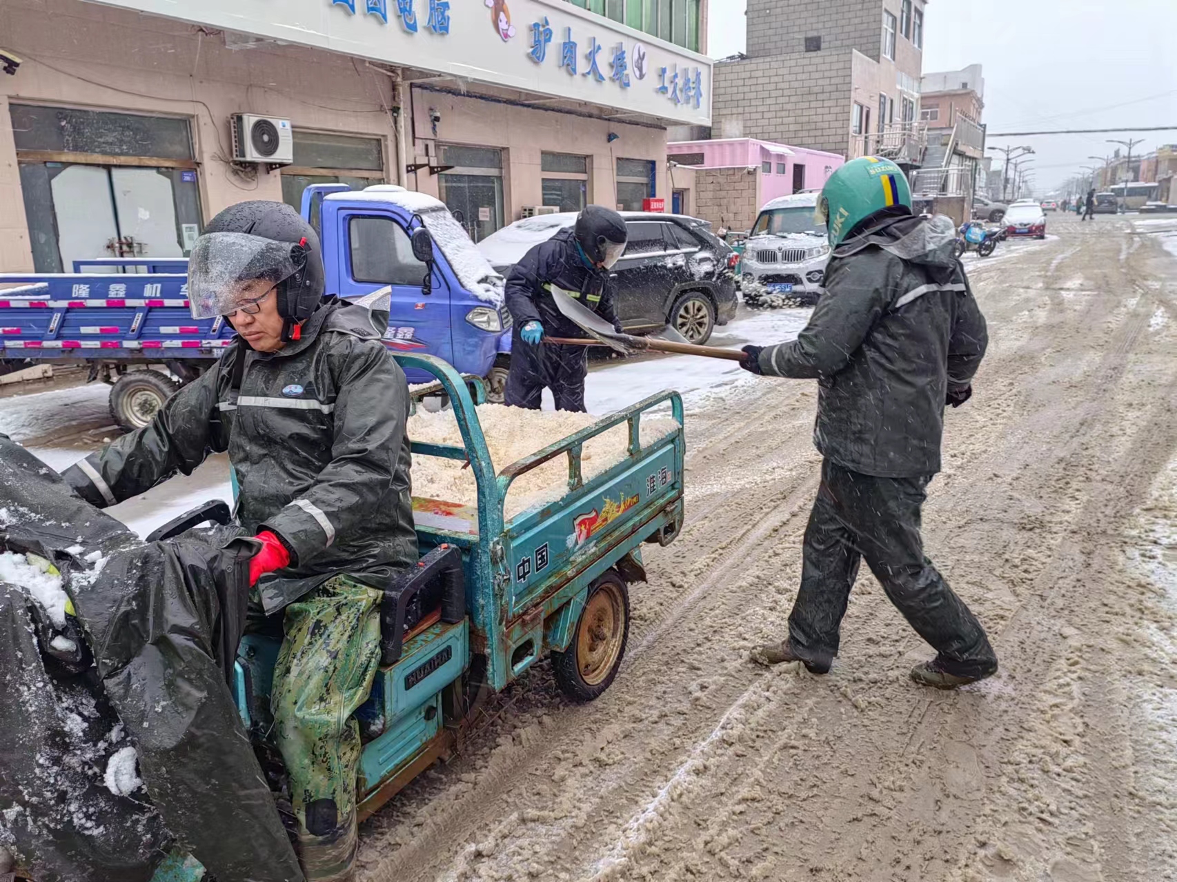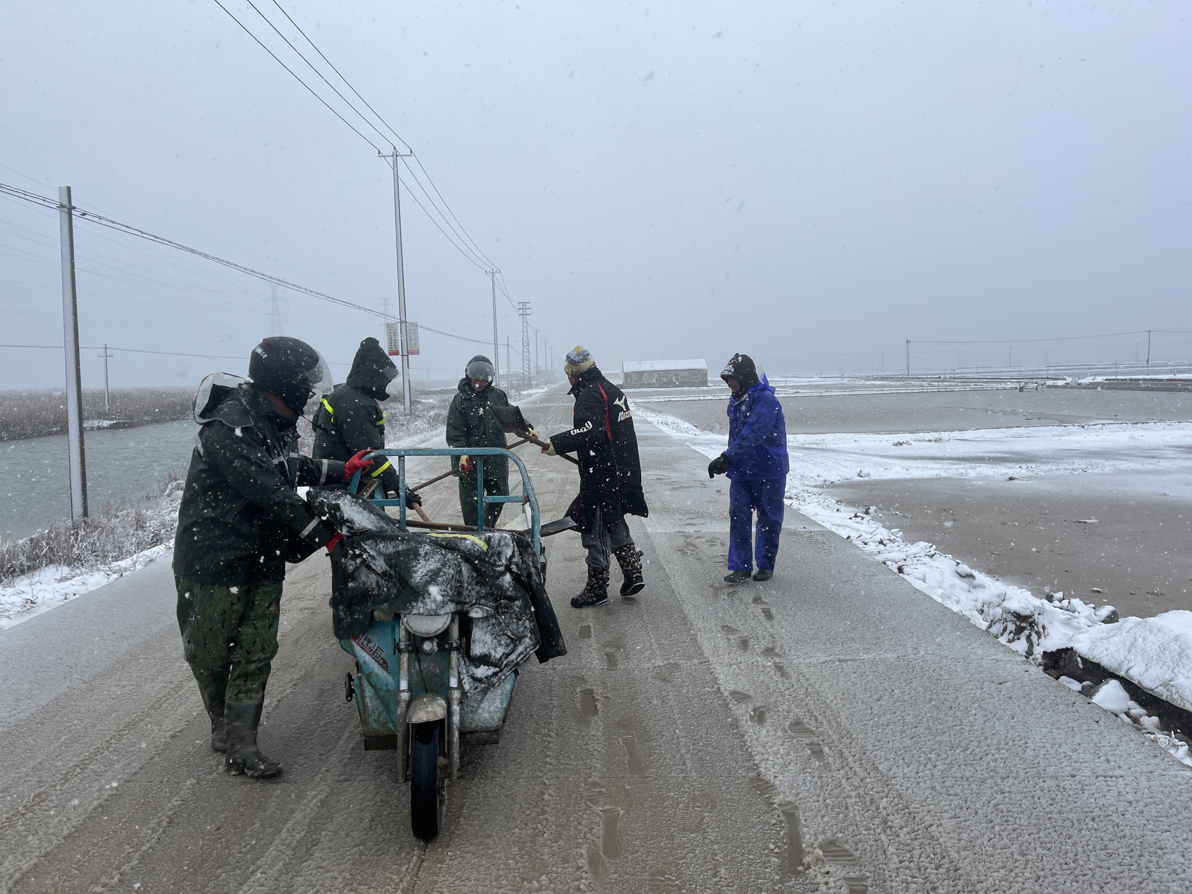 以雪為令,全力奔赴清雪戰(zhàn)一線。隨著降雪量增大,采取“人工+機械”的作業(yè)方式,使用自產(chǎn)原鹽融雪劑對轄區(qū)中二圩居民點、鹽灘內(nèi)部道路、辦公區(qū)域等20余條主次干道不間斷地毯式清雪除冰作業(yè)。清雪現(xiàn)場,大家不畏嚴寒,積極行動,鏟的鏟、推的推,干得熱火朝天,開辟出一條方便群眾出行的“安全路”。截止目前,已累計出動車輛30余臺次,300余人次參與清雪除冰行動,確保職工群眾“雪中通行,雪后路清”。