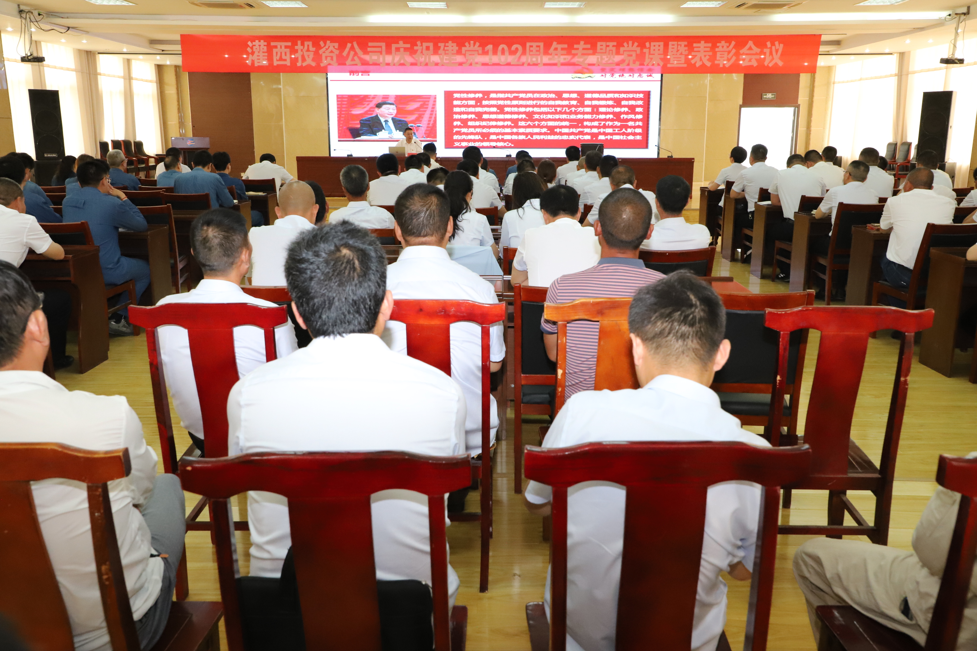 為深入學(xué)習(xí)貫徹黨的二十大精神,熱烈慶祝中國(guó)共產(chǎn)黨成立102周年,6月30日上午,灌西投資公司黨委舉辦慶祝建黨102周年專題黨課暨表彰大會(huì),公司領(lǐng)導(dǎo)班子成員、各單位副職級(jí)以上黨員、機(jī)關(guān)全體黨員、預(yù)備黨員、受表彰人員及特邀華能熱電公司黨員參加會(huì)議,公司黨委副書(shū)記、工會(huì)主席王宏主持會(huì)議。