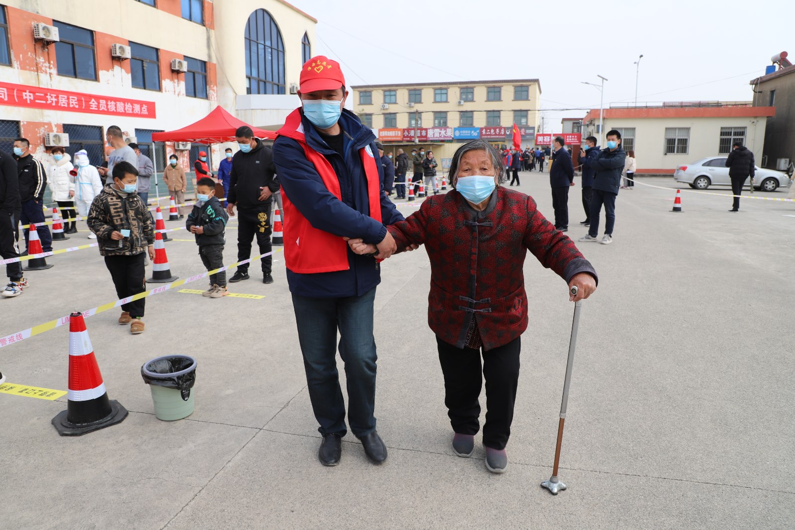 檢測當(dāng)天,上午7點半核酸檢測點準(zhǔn)備就緒,核酸檢測正式開始。檢測點用警戒線拉起通道,居民均按規(guī)定佩戴口罩有序排隊。排隊候檢的居民先登記身份信息及聯(lián)系方式,再由引導(dǎo)員帶隊到指定點位接受醫(yī)護人員的采樣,年紀大且腿腳不便的老人由現(xiàn)在志愿者攙扶,優(yōu)先進行核酸檢測。采樣完畢后,大家按照標(biāo)識盡快從出口處離開檢測點,減少人員聚集。王靜、許冬彥等志愿者不時地提醒大家注意安全、保持一定安全距離,并維持秩序。整個過程緊張有序,核酸檢測工作于下午五點左右順利完成。