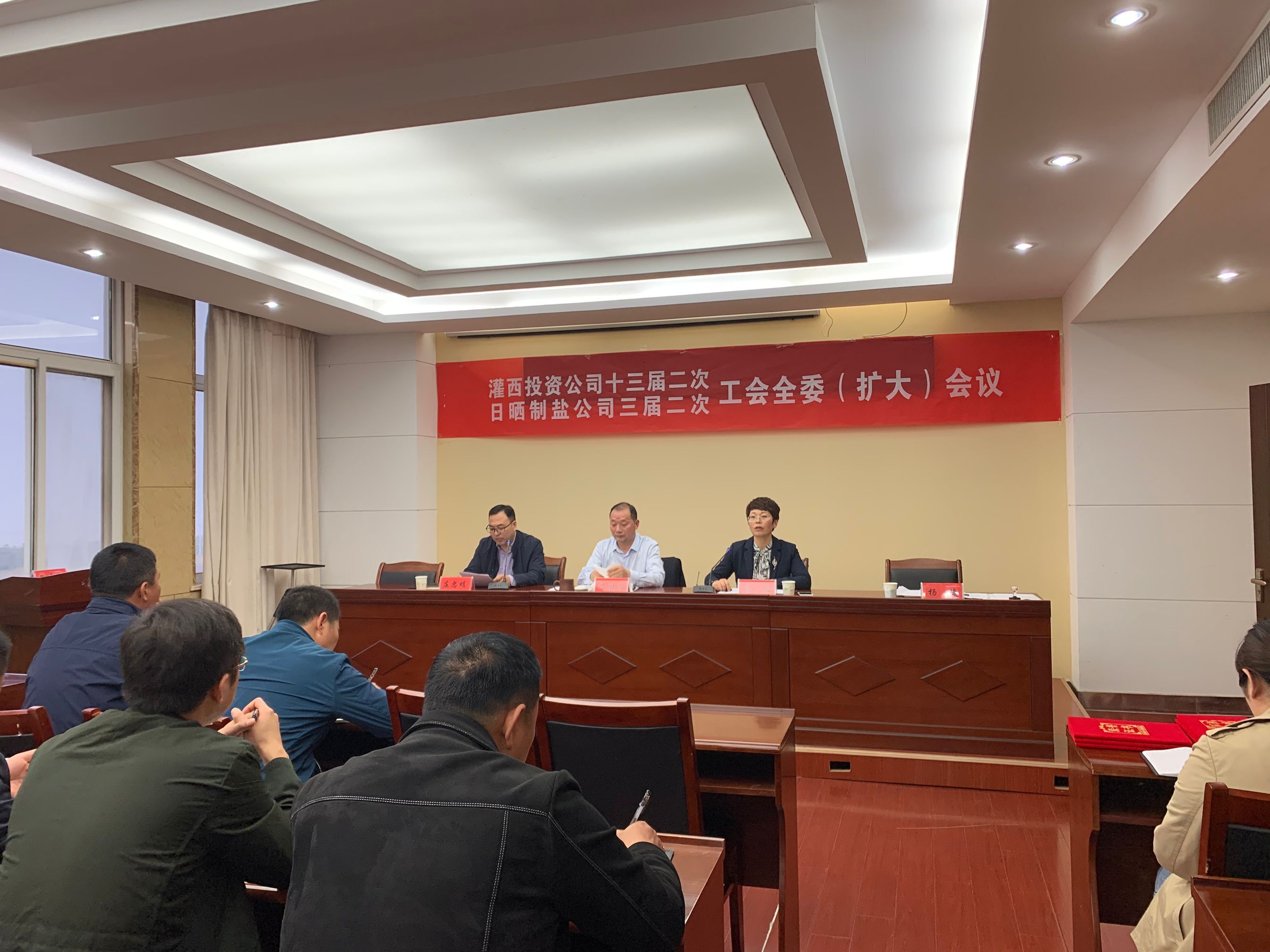 4月28日,灌西投資公司召開十三屆二次、日曬制鹽公司三屆二次工會全委擴大會議,公司黨委書記、董事長、總經理李國文出席會議并講話,工會主席王宏作工作報告。工會委員會全體委員,各單位工會主席、女工委主任參加會議。