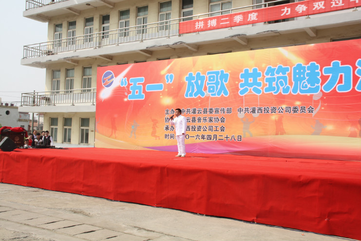 灌云縣委傳部副部長、文聯(lián)主席孫成軍、音協(xié)主席吳平、集團公司工會副主席李嵐琴,灌西投資公司領導班子成員以及來自公司各條戰(zhàn)線的廣大職工和群眾近千人一同觀看了演出。演出前,投資公司黨委副書記、總經(jīng)理李國文作了熱情洋溢的致詞。
