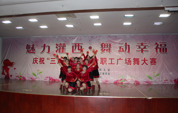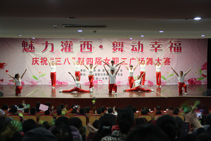 3月8日下午,灌西投資公司第四屆“魅力灌西•舞動幸福”廣場舞比賽在灌云縣臨港產(chǎn)業(yè)區(qū)管委會禮堂舉行,由公司各單位的女工組成的8支代表隊參加角逐,廣大女工用婀娜的舞姿和精彩的表演慶祝國際“三八”婦女節(jié)的到來,觀看比賽的職工群眾有400余人。