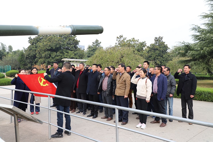 在紀(jì)念館前,大家面對(duì)鮮紅的黨旗,重溫入黨誓詞,共同表達(dá)對(duì)革命烈士最崇高的敬意。