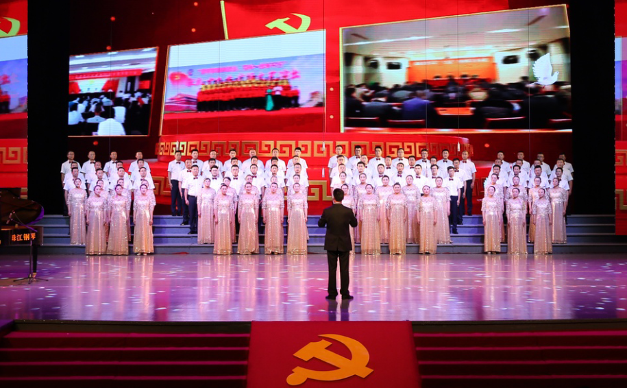 “風在吼,馬在叫,黃河在咆哮……”嘹亮的歌聲在市藝術中心舞臺上響起, 6月28日下午,集團公司2019年“感黨恩、頌祖國、贊工投”大合唱比賽在此隆重舉行,灌西公司百人合唱團獲得二等獎,集團黨委書記、董事長楊龍為灌西合唱團頒發(fā)獎杯。