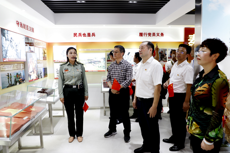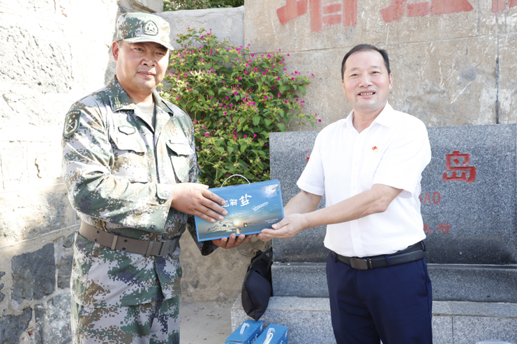 上午9點(diǎn)10分,隨著百名人員的陸續(xù)登島,往日寧?kù)o的開(kāi)山島突然熱鬧起來(lái),紅旗飄舞,歌聲飛揚(yáng)。沿著山梯而上,重走全國(guó)“人民楷模”、“最美奮斗者”、優(yōu)秀共產(chǎn)黨員王繼才同志生前的巡島路線,追尋英模足跡;參觀“開(kāi)山島夫妻哨所事跡展示館”,瞭望臺(tái)、生活間和營(yíng)房,實(shí)地感受王繼才夫婦在環(huán)境異常惡劣的開(kāi)山島上,以島為家、與海為鄰,舍家為國(guó)、不畏艱險(xiǎn),32年如一日?qǐng)?jiān)守海防事業(yè)的奉獻(xiàn)精神;在開(kāi)山島最高處的國(guó)旗廣場(chǎng)上,黨員們一起觀看守島民兵升國(guó)旗,組織開(kāi)展重溫入黨誓詞儀式,教育引導(dǎo)全體黨員不忘初心,牢記使命。