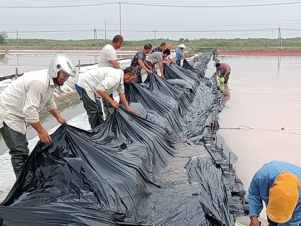 隨著主汛期到來,由于各班組部分塑布已達(dá)使用年限,老化嚴(yán)重,且容易造成鹵水跑漏現(xiàn)象發(fā)生,為了減少鹵水損耗,7月10日,新河制鹽分公司黨支部組織黨員突擊隊(duì)到班組對(duì)到期塑布進(jìn)行更換。
