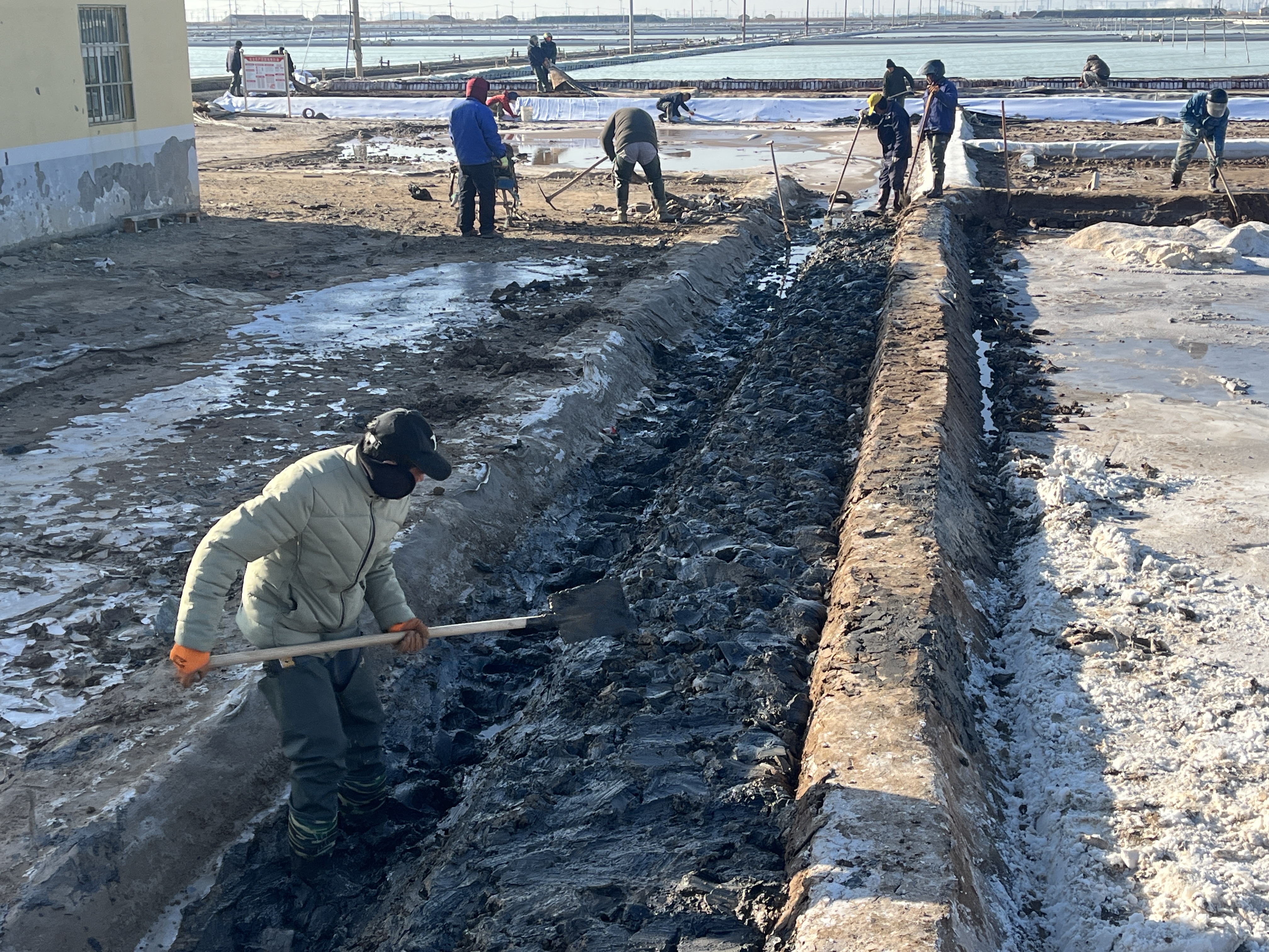 冬季是我們?nèi)諘裰汽}收儲鹵水、扒土塘、整理灘場文明的最佳時期,也是為2024年工作起好頭,邁好步的關鍵時期,作為重擔我先挑,沖鋒我在前,充分調(diào)動一切積極因素,咬定目標,盡最大努力為班組創(chuàng)造良好的工作條件,發(fā)揮每一個班組的最大潛能,確保越冬鹵水除硫率達到95%以上;鹵水接受率100%;長鹽4萬噸;氯化鈉含純96.2%以上;單耗控制在4.2立方/噸以內(nèi);硫酸根含量控制在0.35%以下,抓好冬季風性咬制鹵水;安全生產(chǎn)無事故。對任務的完成情況做到每周有安排,每周有總結,確保各項工作按部、有序、穩(wěn)定向前推進。成立“指揮部”掛圖作戰(zhàn),打好冬準戰(zhàn)役:各班組按照標準化、規(guī)范化建設池埝,精心修復結晶池堵頭埝截,修整池埝150余條,1.28萬余米;