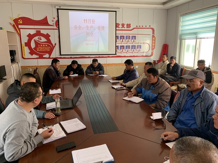 會議從安全、生產、疫情三個方面展開。公司經理程龍指出,本周為職工年休假調休時間,全體班組長要高度重視假期的安全問題,針對安全“突擊月”中存在的問題全部整改落實到位,并做好隱患監(jiān)察工作,做好假期間的安全值班工作,保證班組生產生活正常運行。對休假在家的職工班組長要做好休假期間的消防安全宣傳工作。