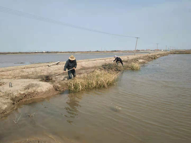 俗話說:“一年之計在于春”,鹽業(yè)生產(chǎn)同樣如此,清明節(jié)后隨著氣溫和蒸發(fā)量逐步升高,一班“甜頭”4至8排大米草泛濫成災(zāi),有部分格塊灘面被大米草完全覆蓋,嚴(yán)重制約了正常制鹵工作。面對困難,該班組沒有畏懼,沒有氣餒,5名職工心往一處想,勁往一處,用鐮刀鐵锨割倒挖清格堰大米草,同時使用割草機,推進(jìn)速度。采取步步推進(jìn),逐塊清除方式,以“愚公移山精神”清除大米草,理順走水路線,完善灘地條件。(海水鹽基地朱文龍)
