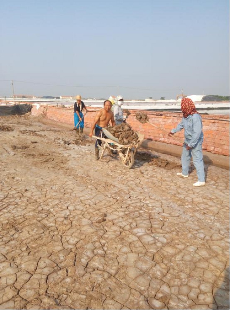 連續(xù)的高溫讓人熱得喘不過氣來,正當(dāng)人們躲在空調(diào)下享受清涼的時候,日曬制鹽埒南制鹽分公司的廣大干群仍堅持奮戰(zhàn)在生產(chǎn)一線,搶抓有利天時組織生產(chǎn)?;畈?、除硫、整理池板、做天溝各項工作穩(wěn)步有序推進(jìn)。汗水浸濕了他們忙碌的身影子影。