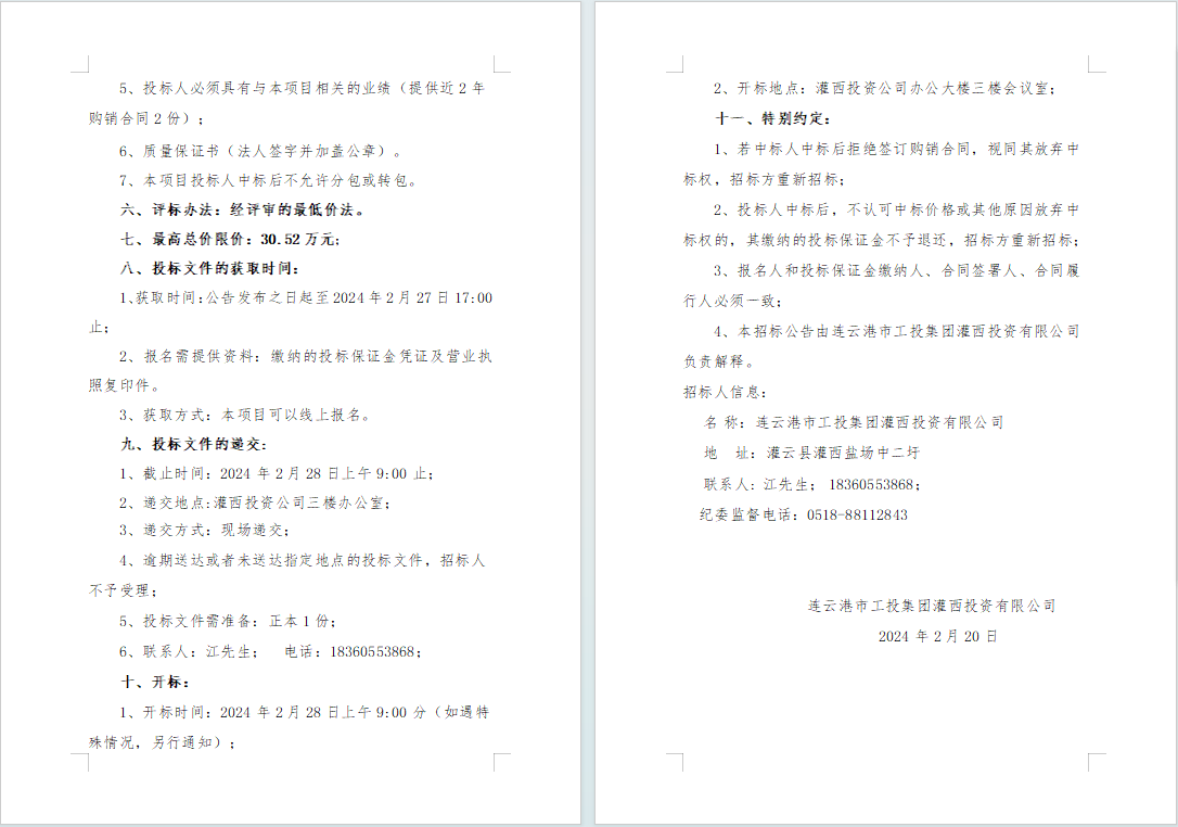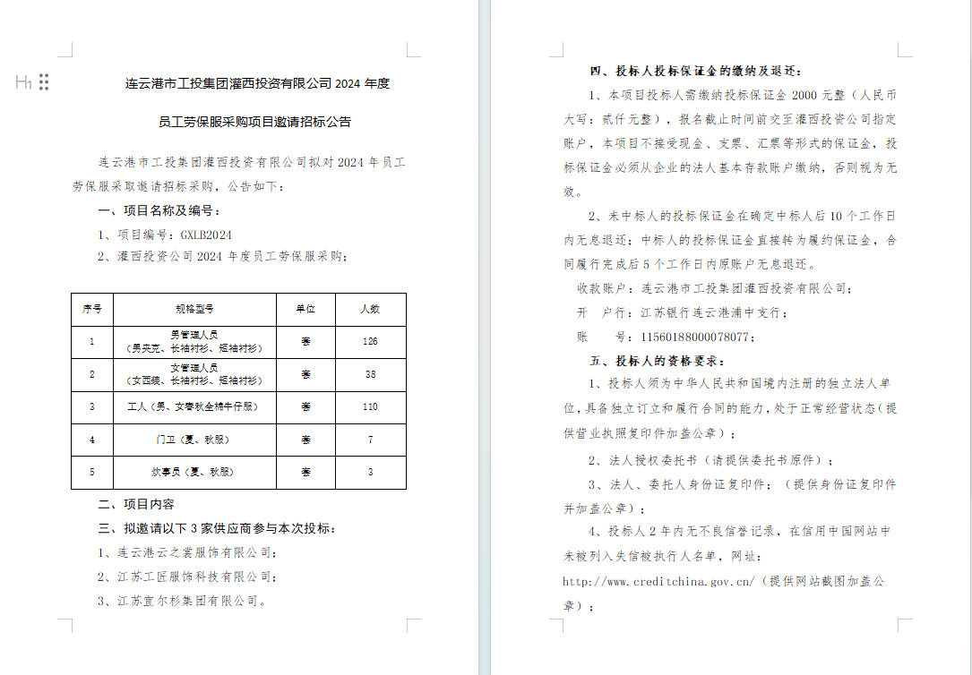 連云港市工投集團(tuán)灌西投資有限公司2024年度員工勞保服采購項(xiàng)目邀請(qǐng)招標(biāo)公告