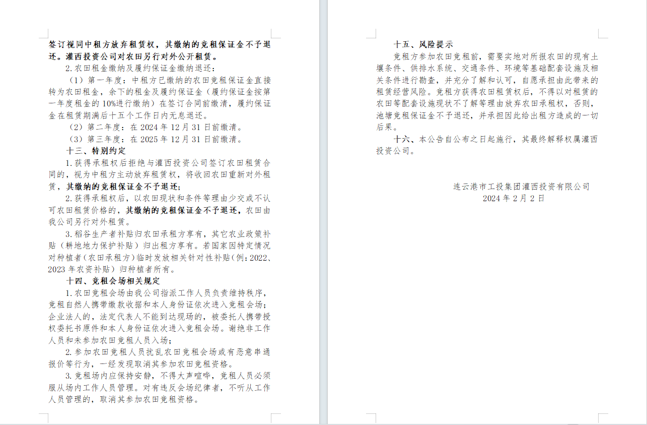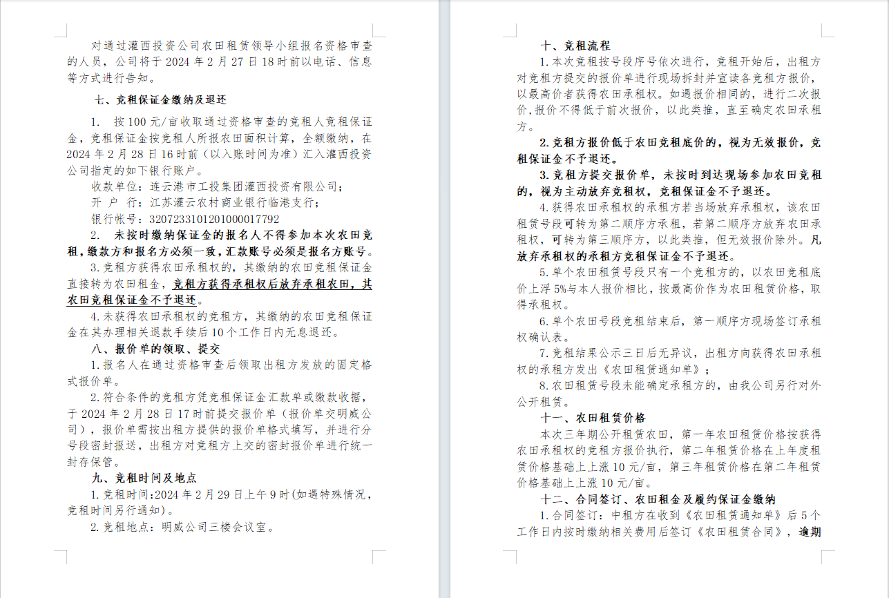 2024年灌西投資公司農(nóng)田公開 競租公告