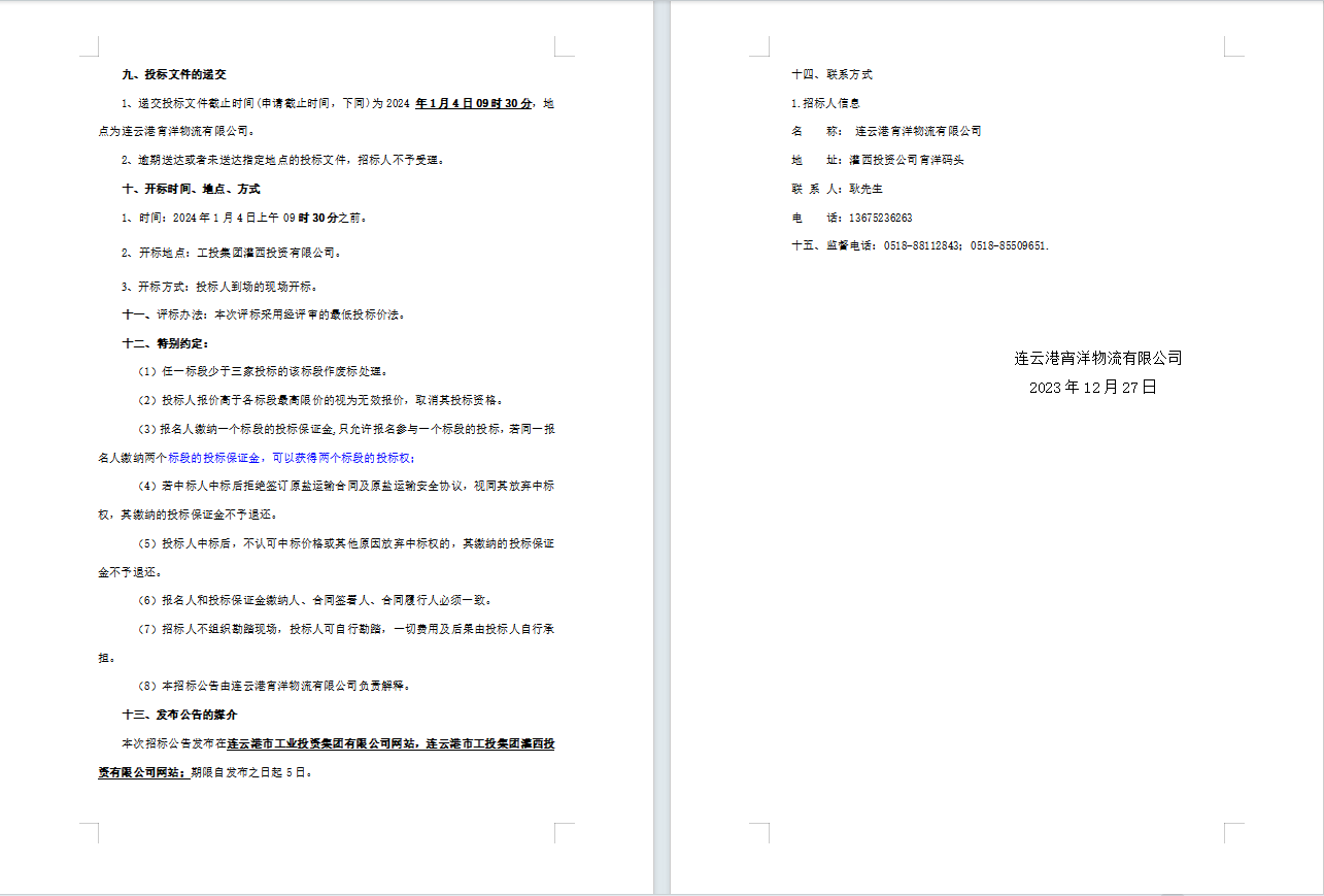 連云港宵洋物流有限公司原鹽車輛運輸服務業(yè)務招標公告(二次)