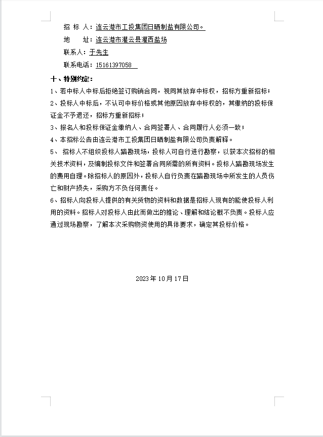 連云港市工投集團(tuán)日曬制鹽有限公司玻璃纖維桿招標(biāo)公告
