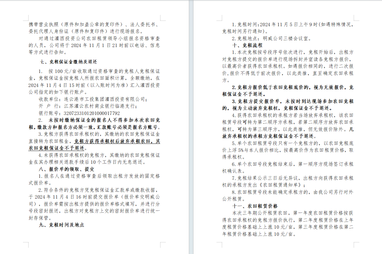 灌西投資公司2024年到期農(nóng)田公開(kāi)競(jìng)租公告