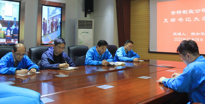 10月14日下午,我公司黨委在四樓黨建活動室組織開展“支部書記大學(xué)堂”活動。雪花鹽車間黨支部副書記楊加華以“學(xué)黨史守初心 充分發(fā)揮戰(zhàn)斗堡壘作用”為主題,結(jié)合車間工作實際,為各支部黨員干群上了一堂生動的黨課。通過此次活動的開展,引導(dǎo)廣大黨員干群學(xué)習(xí)百年黨史,牢記初心使命,進一步堅定信心,鼓足干勁,齊心協(xié)力推動全年目標順利實現(xiàn)。(金宣)