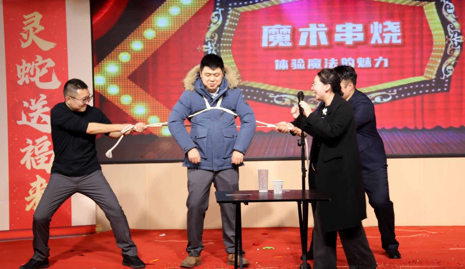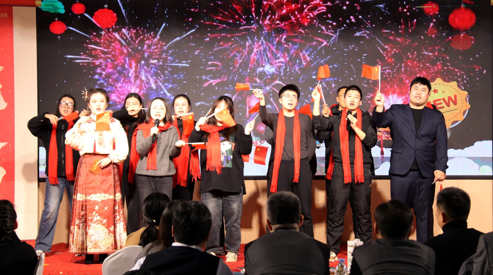 下午15點(diǎn),備受期待的“金蛇獻(xiàn)瑞 迎春共進(jìn)”辭舊迎新聯(lián)歡會(huì)在倒計(jì)時(shí)中如期舉行。聯(lián)歡會(huì)在開(kāi)場(chǎng)舞《福歲賀新程》中拉開(kāi)序幕,演員們身著喜慶的服裝,以優(yōu)美的舞姿為觀眾呈現(xiàn)了一場(chǎng)視覺(jué)盛宴。