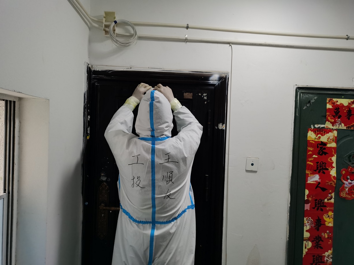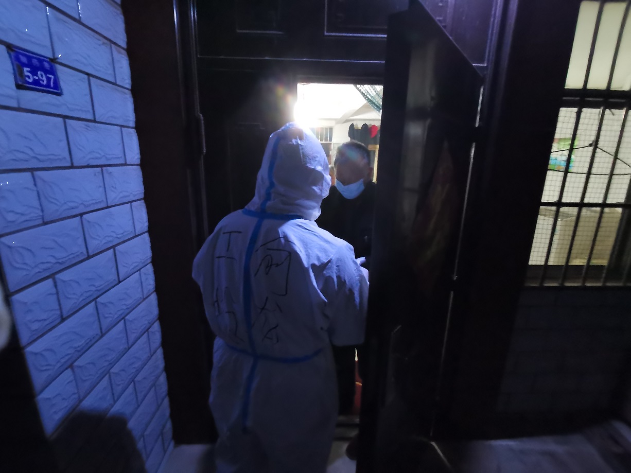 “終于完成任務(wù)了”,看著已被雨水打濕的安裝名單,工投金融板塊的三名志愿者長長地舒了一口氣。志愿服務(wù)隊進駐當(dāng)天就按照社區(qū)的統(tǒng)一安排,立即開展了門磁安裝門磁等一線工作。由于新橋社區(qū)是本輪疫情最早的“爆發(fā)點”,且轄區(qū)內(nèi)多為老舊小區(qū),街巷縱橫、門牌號排列混雜,群租、合租情況普遍,外來務(wù)工人員較多,給安裝工作造成了較大難度,恰巧當(dāng)天夜里下起了大雨,雨水遮擋視線,讓原本復(fù)雜的工作更添新的困難。志愿者一邊電話聯(lián)系,一邊用手電查找街邊的門牌,經(jīng)過3個半小時的摸排,終于完成了全部的安裝任務(wù)。