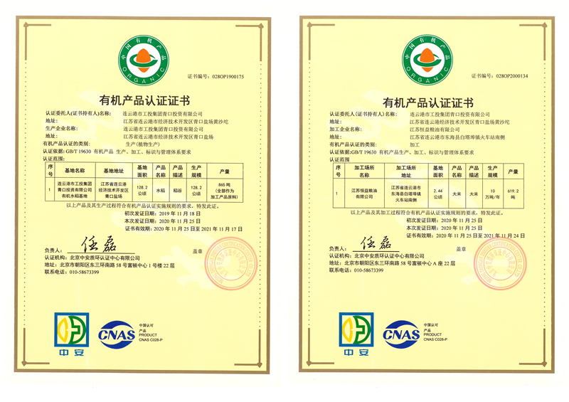 近期,我公司種植的水稻與加工的成品大米順利通過有機認證,獲得有機產(chǎn)品認證證書。