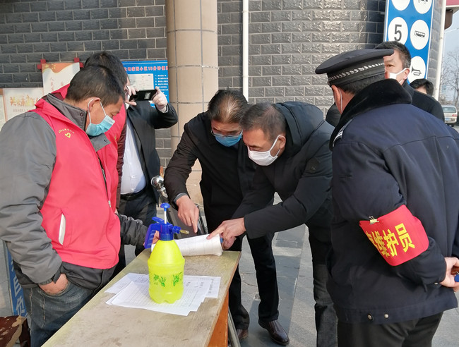 在鹽場家園小區(qū)門口,防控新型冠狀病毒感染的肺炎疫情防控知識通過喇叭反復(fù)播放,門口值班人員“全副武裝”,建立來客登記和體溫檢查應(yīng)急措施。劉主席一行詳細(xì)查看了小區(qū)入口車輛的排查情況,了解小區(qū)針對疫情采取的措施后強(qiáng)調(diào),要繼續(xù)依靠小區(qū)居民,加大宣傳力度,營造防控疫情,人人有責(zé)的強(qiáng)烈氛圍,公司全體職工要時(shí)刻繃緊防控這根弦,思想上要更加重視,安排上更加嚴(yán)密,措施上更加務(wù)實(shí),發(fā)揚(yáng)釘釘子的精神,堅(jiān)持把人員管理作為防控工作的中心環(huán)節(jié),每家每戶上門排查、工作人員要戴好口罩,把防疫工作的各項(xiàng)要求落到實(shí)處。同時(shí),黨員干部要充分發(fā)揮先鋒模范作用和支部的戰(zhàn)斗堡壘作用,讓黨旗在防控疫情斗爭的第一線高高飄揚(yáng),凝心聚力,堅(jiān)決打好疫情阻擊攻堅(jiān)戰(zhàn)。