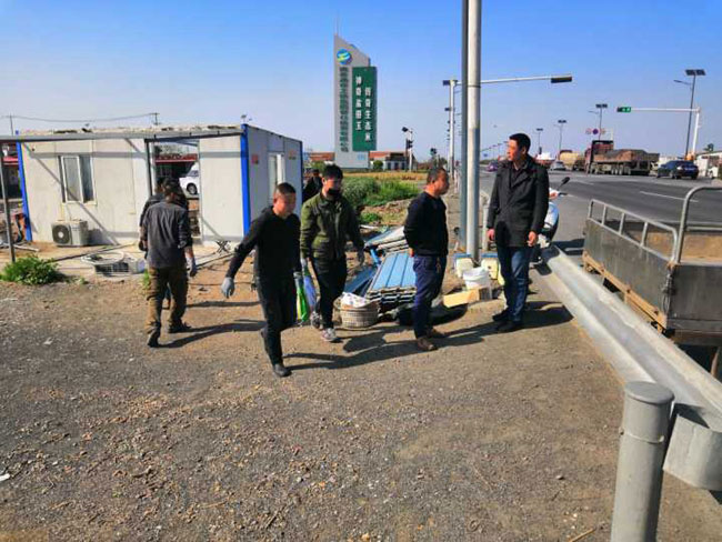 公司領(lǐng)導(dǎo)態(tài)度明確,一抓到底全面整治交通環(huán)境。摸清形勢(shì),多次召開(kāi)整治工作專(zhuān)項(xiàng)會(huì)議,安排部署整治行動(dòng) , 公司領(lǐng)導(dǎo)放棄節(jié)假日,現(xiàn)場(chǎng)辦公。三洋、黃沙、大新作為主要牽頭單位,主動(dòng)扛起責(zé)任,挑起擔(dān)子,從泰祥公司抽調(diào)人力,大家齊心協(xié)力。按照時(shí)間節(jié)點(diǎn),倒排工期,掛圖作戰(zhàn),針對(duì)現(xiàn)場(chǎng)工作內(nèi)容,制定 “三步工作法”。一是深入塘頭養(yǎng)殖戶(hù)面對(duì)面交流,講明利害關(guān)系,做通群眾思想工作,確保整治行動(dòng)順利進(jìn)行;二 是 制定好拆除先后順序,調(diào)配需要的挖掘機(jī)、運(yùn)輸車(chē)輛等硬件設(shè)施,確保拆遷過(guò)程快速有力;三 是 對(duì)于已拆除的看護(hù)房,及時(shí)清理房屋碎石塊,筑牢地基,安排重建。