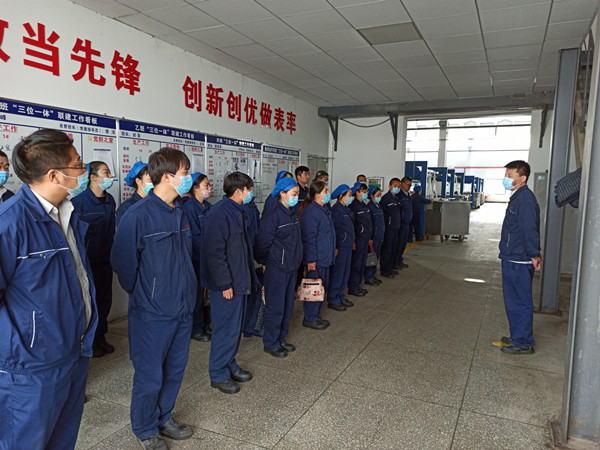 為加強(qiáng)規(guī)范化管理,近日,公司制定生產(chǎn)班組班會開會流程,規(guī)定班組員工按指定區(qū)域點位有序站好、著裝整齊、動作劃一。通過該項措施,有效改善生產(chǎn)班組員工開會時“松、散、懶”形象,提起振奮,提勁實干。