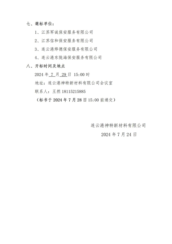 神特公司2024年保安服務(wù)邀請招標公告