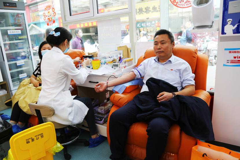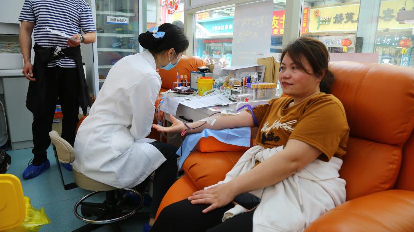活動現(xiàn)場,在連云區(qū)墟溝愛心獻血屋工作人員的指引下,參加獻血的干部職工有序掃碼登記、測量血壓、抽血化驗,積極配合做好獻血前的各項準(zhǔn)備工作。經(jīng)過體檢、驗血合格后,大家依次捋起袖子捐獻熱血,整個獻血過程有條不紊、秩序井然。此次獻血職工中,既有第一次參加獻血的“新人”,也有獻血累計達6000毫升的“老熟人”,涓涓細流傳真情,滴滴熱血暖人心。