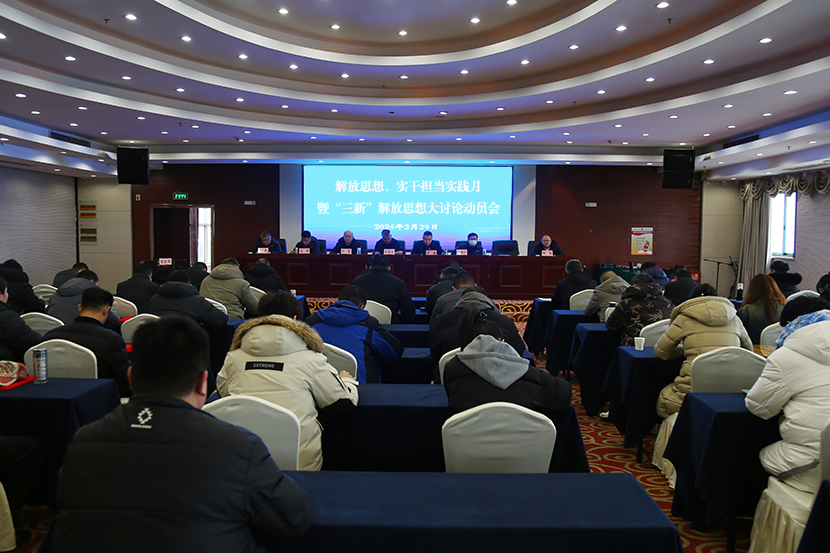 為進(jìn)一步推進(jìn)思想大解放、能力大提升、作風(fēng)大轉(zhuǎn)變、工作大落實(shí)。2月29日下午,投資公司在墟溝金臺(tái)大酒店十樓會(huì)議室,召開“解放思想、實(shí)干擔(dān)當(dāng)實(shí)踐月”暨“三新”解放思想大討論動(dòng)員會(huì)。公司領(lǐng)導(dǎo)班子成員,各單位負(fù)責(zé)人,分會(huì)負(fù)責(zé)人,機(jī)關(guān)主管以上管理人員等參加會(huì)議。公司黨委書記、董事長(zhǎng)、總經(jīng)理王德志出席會(huì)議并講話,會(huì)議由公司常務(wù)副總經(jīng)理卞霄主持。