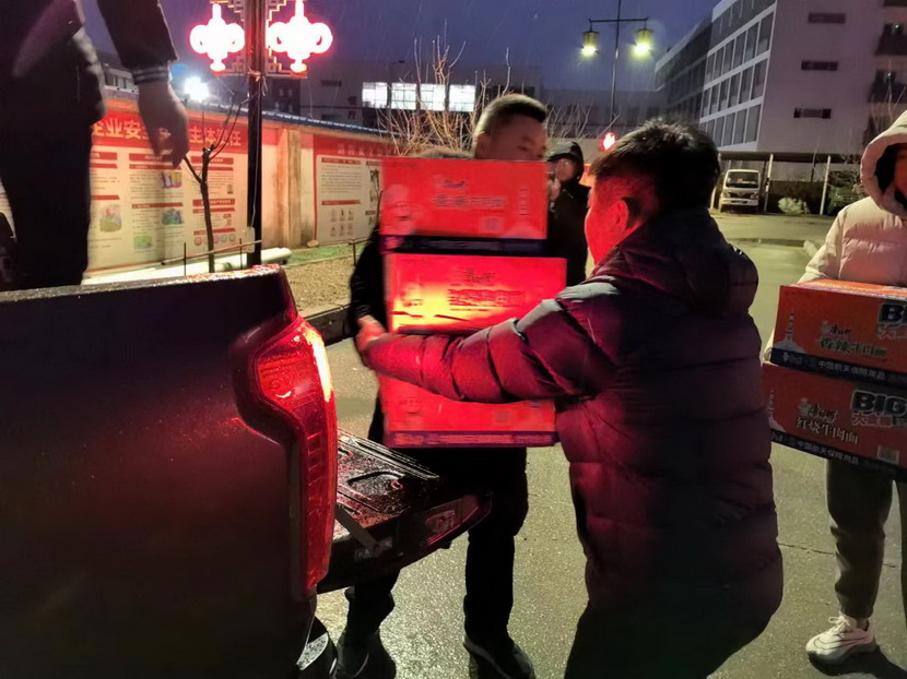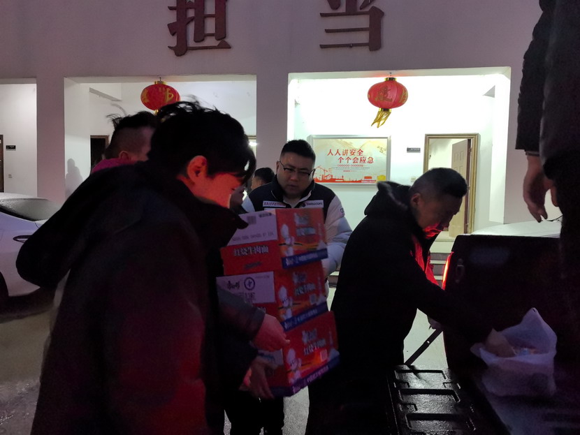 夜間,工會(huì)主席傅健一行現(xiàn)場看望慰問清除冰雪戶外工作人員,為他們送上方便面等慰問物資,并囑咐他們在辛勤工作的同時(shí)做好防寒保暖、安全防護(hù)。為在冰天雪地中堅(jiān)持工作的一線工人送去了溫暖和關(guān)懷。