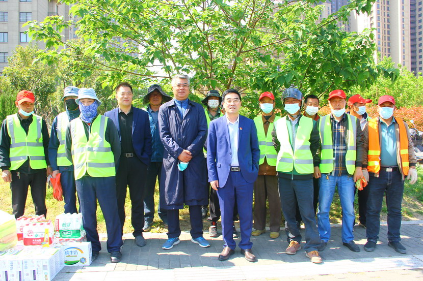 公司領(lǐng)導一行首先來到東方大道綠化工程現(xiàn)場,看望慰問海州灣公司志愿服務隊廣大職工。五一期間,翔立分公司承接一單綠化工程,由于時間緊任務重,全公司各單位、機關(guān)同志分別組成8支志愿服務隊,大家放棄五一假期,全力支援翔立分公司。董事長王德志說,現(xiàn)在正值“五一”勞動節(jié),大家為了臺北的明天,為了自己的夢想放棄五一假期,讓人十分感動,你們?nèi)匀粓允卦趰徫簧希蠹倚量嗬?!?/span>