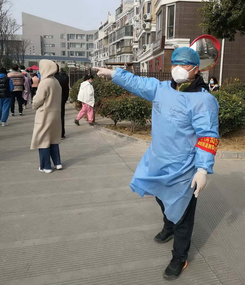 雖然地處開發(fā)區(qū),但是這個(gè)小區(qū)的防疫任務(wù)一點(diǎn)也不輕松,作為連云港最大的社區(qū)之一,昌圩社區(qū)由裕源、新城花小、昌圩湖三個(gè)小區(qū)組長(zhǎng),常住人口近3萬人,防疫責(zé)任重大,工作繁重。市委動(dòng)員令下達(dá)之后,廣大黨員紛紛請(qǐng)戰(zhàn),在臨時(shí)黨支部帶領(lǐng)下,積極參加社區(qū)疫情防控工作。黨支部書記李明、紀(jì)檢委員于洪亮每天組織工作,檢查督導(dǎo),親自動(dòng)手,掛標(biāo)語、拉橫幅,積極宣傳疫情防控政策措施。臨時(shí)黨支部副書記蘇玲,每天五點(diǎn)多就得起床做飯,把兩個(gè)女兒先安頓好,她最小的女兒才一周歲,大女兒也不過才7歲,然后7點(diǎn)不到就穿上了志愿者紅馬甲,挨家挨戶通知核酸檢測(cè)。還有海州灣公司總經(jīng)理霍正剛堅(jiān)持每天為小區(qū)進(jìn)行環(huán)境消殺,內(nèi)退黨員孫芳成為“專業(yè)”核酸檢測(cè)員。在她們的感染下,廣大黨員、職工朱春年、夏軍、孫健、朱文健、孫銀、秦黎明、邱榮斌、伏彩保、韓永光,等等等等,紛紛走上前線。