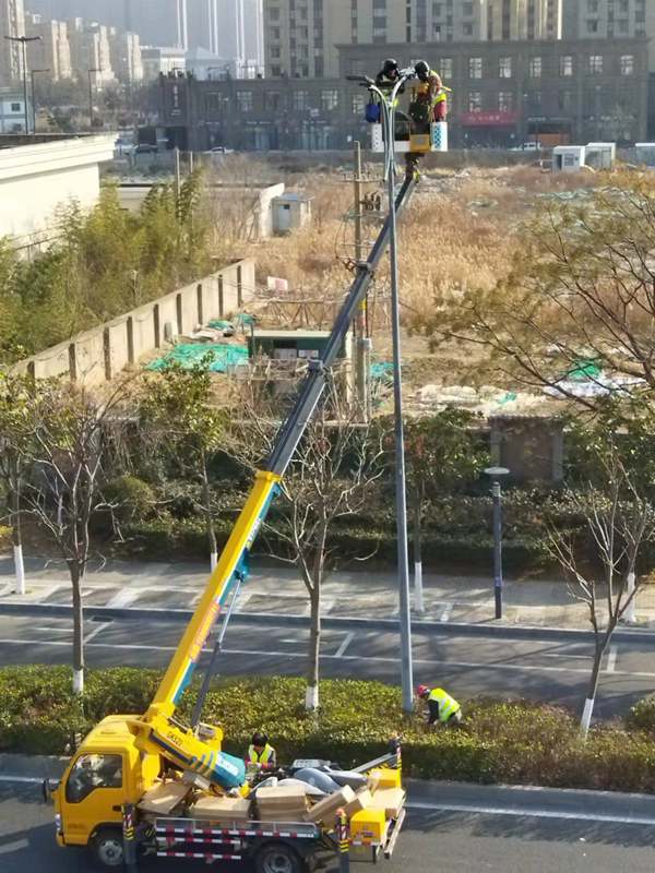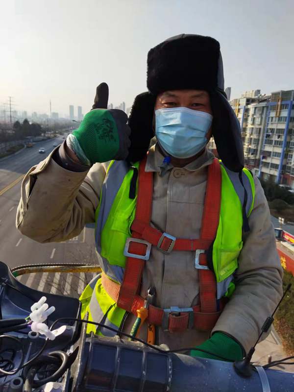 ?該項(xiàng)城市照明提升工程工程量大(約6500套路燈),工期緊。為了趕時(shí)間進(jìn)度,翔立“鐵軍”們由12月27開始施工,日以繼夜、馬不停蹄的連續(xù)奮戰(zhàn)在工程一線,沒有一個(gè)人掉隊(duì),沒人喊苦叫累,個(gè)個(gè)都像鉚足了勁的“小牯?!薄<鐜А栋踩珕T》紅袖章的工程負(fù)責(zé)人喬以成騎著電瓶車不時(shí)地在海寧大道上來回穿梭著,“王師傅,高空作業(yè)車四條支撐臂必須支撐平穩(wěn)牢固后再提升哦”,“段青春,把前方施工的警示牌擺在車輛后面,還有道路安全錐桶一定要將作業(yè)區(qū)域圍起來,與后面來車方向保持安全距離?!痹谑袇^(qū)人流密集的道路上同時(shí)有5臺(tái)登高作業(yè)車分區(qū)域高空作業(yè)的情況下,他最放心不下,畢竟是高空作業(yè)!為了防止高空墜落,登高施工操作人員全部按要求規(guī)范佩戴安全帶、系好安全繩、絕緣鞋、防寒安全帽、警示馬甲一應(yīng)俱全,武裝整齊。為防高空落物,作業(yè)車吊籃內(nèi)使用的工具全部系上“失手繩”,安全施工是必要的前提,有措施,有辦法,畢竟千條萬條,安全才是第一條!
