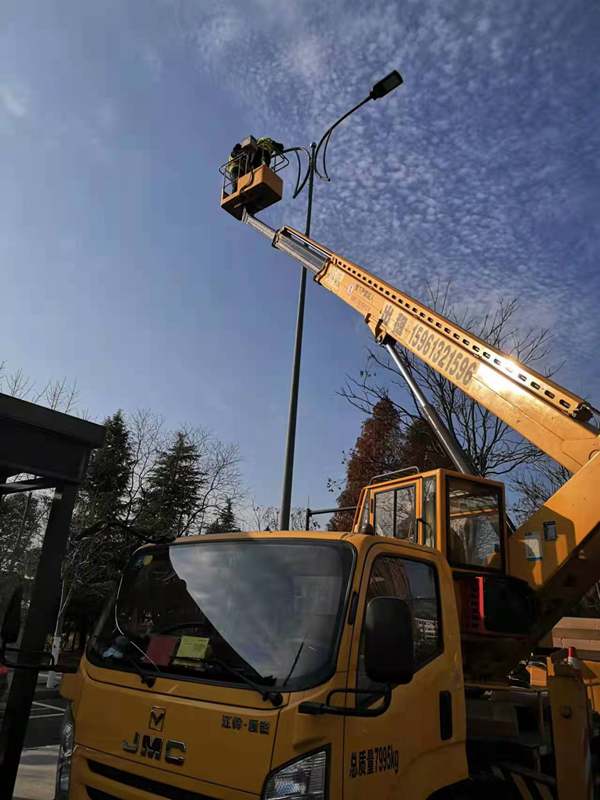 ?早已習(xí)慣了風(fēng)餐露宿的翔立人,中午一碗面條、或是一碗蓋澆飯草草了事,飯后不休息,直接爬上高空作業(yè)車?yán)^續(xù)工作,運(yùn)輸隊(duì)圍繞著幾臺(tái)高空作業(yè)車也是忙個(gè)不亦樂乎,“加浦,像這樣將舊路燈立起來,先貼著車廂圍一圈,這樣可以多裝點(diǎn)”,既要負(fù)責(zé)將舊路燈收集送到甲方倉庫,又要領(lǐng)出來供給幾個(gè)隊(duì)的物料供應(yīng),同樣是忙的馬不停蹄。大家你追我趕,相互暗暗競爭者,賽安全,比質(zhì)量,趕進(jìn)度。晚上收工后,翔立辦公群里各隊(duì)報(bào)工作量“一隊(duì)今天完成了18根桿”,“二隊(duì)今天干得最多了,他們完成20根桿,換了40個(gè)燈頭,不簡單啊”,“你也不錯(cuò)嗎,一個(gè)人完成了16根桿,還想咋的”,“今天俺們隊(duì)的工具不得手,明天我們隊(duì)一定要超過你們”,群里大家相互鼓勵(lì)著!