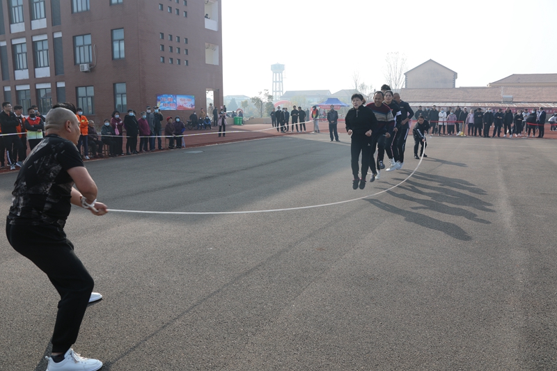 跳繩比賽中,兩位搖繩隊員不斷提醒鼓勵,隊員們則咬牙堅持,相互加油。大家排開一字長陣一個接著一個躍過長繩,步伐輕盈。每一個參賽選手都竭盡所能,以最快的速度躍過長繩,用一次次律動的跳躍動作,挑戰(zhàn)著自己的力量和耐力。最終在大家的齊心協(xié)力下獲得第二名的好成績。