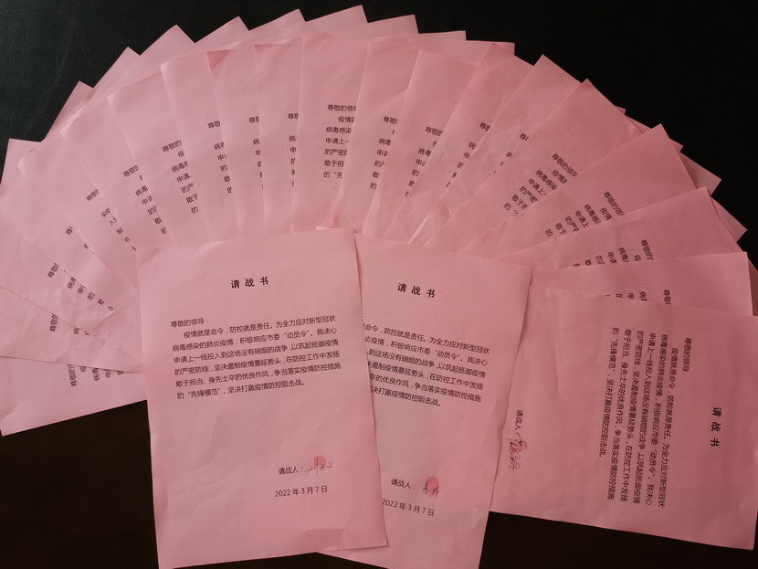 在黨員帶動(dòng)下,群眾也紛紛行動(dòng)起來?!斑€有我們,我們雖然不是黨員,但是我們也想為抗疫貢獻(xiàn)自己一份力量......”優(yōu)秀職工沈秀成、邱榮濱、韓永剛、占恒春如此說道?!拔覜Q心申請上一線投入到這場沒有硝煙的戰(zhàn)爭,以筑起抵御疫情的嚴(yán)密防線,聽從組織的統(tǒng)一指揮與安排,不計(jì)得失,無論生死,絕不退縮......”,42名志愿者在請戰(zhàn)書上簽上自己的名字并按下手印,紛紛表示,隨時(shí)準(zhǔn)備著黨中央的召喚,祖國的召喚,一聲令下,立即奔赴抗戰(zhàn)一線。