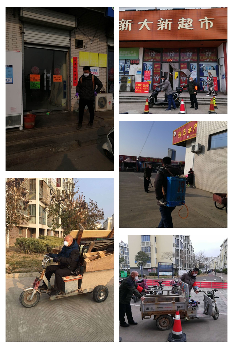 年初三開(kāi)始,和值班領(lǐng)導(dǎo)站在鄰里中心入口處時(shí)刻提醒業(yè)主外出戴口罩,做了很多“不近人情”的事,常常不被理解,甚至于還要受人責(zé)罵。對(duì)于這些他從不埋怨,本著初心只為從源頭上遏制疫情把好關(guān)。小區(qū)內(nèi)全面實(shí)施嚴(yán)格消毒管理措施,韓加柱、盧廷高二人主動(dòng)承擔(dān)了鄰里中心的消毒水噴灑工作。樓道里、垃圾桶旁,不放過(guò)任何死角。沒(méi)有N95口罩,來(lái)不及經(jīng)專(zhuān)業(yè)的知識(shí)培訓(xùn)。近日來(lái)共計(jì)噴藥消毒近萬(wàn)多平方,節(jié)日期間清掃垃圾,消毒垃圾桶他們用默默的行動(dòng)為廣大業(yè)主筑起一道堅(jiān)固的生命防線。