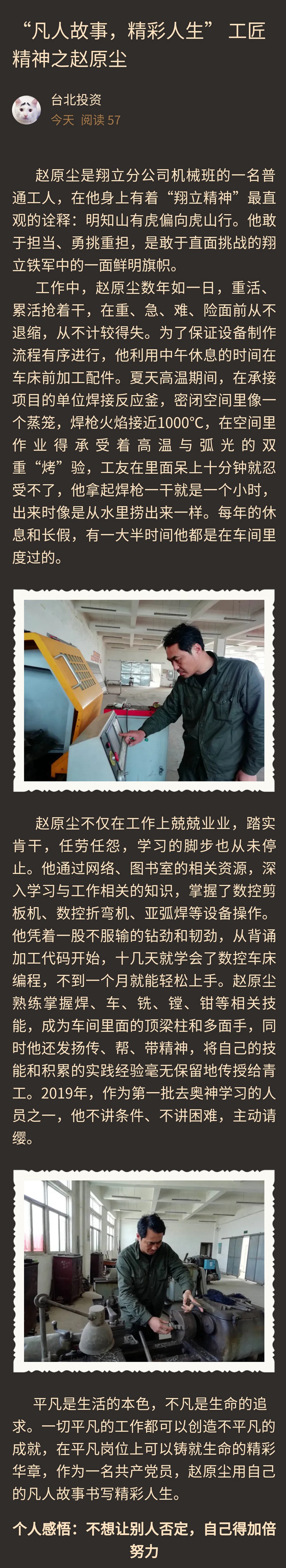 【匠心筑夢 實(shí)干興企】“凡人故事,精彩人生” 工匠精神之趙原塵
