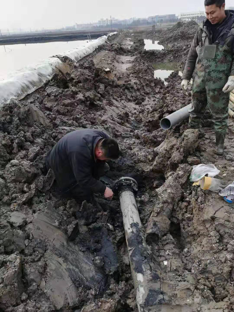 該項工程是為了配合開發(fā)區(qū)新建道路正常施工,和保證大浦工區(qū)原鹽生產(chǎn)不受影響,由翔立分公司承接的猴嘴十二路下穿DN315和DN160兩根PE管道穿越工程。因規(guī)劃的穿越點處于水塘邊,現(xiàn)場施工環(huán)境較為困難。翔立公司參與施工人員想方設(shè)法克服困難,穿越施工前采取發(fā)電機水泵抽排水、填土夯實頂管機作業(yè)場地、克服淤泥深等障礙,保證施工進(jìn)度的正常進(jìn)行。